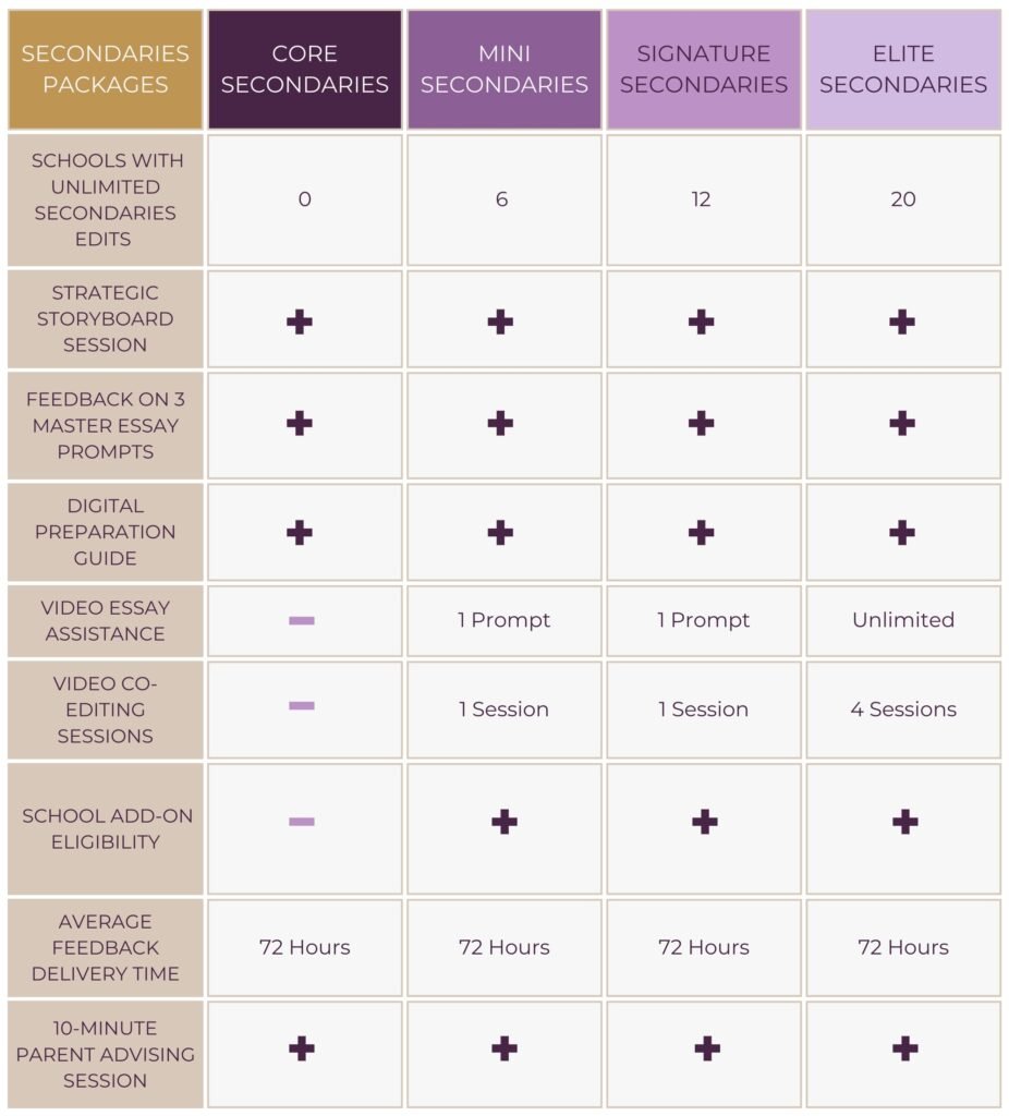 - 20 schools: unlimited edits on all secondary essays for 20 schools